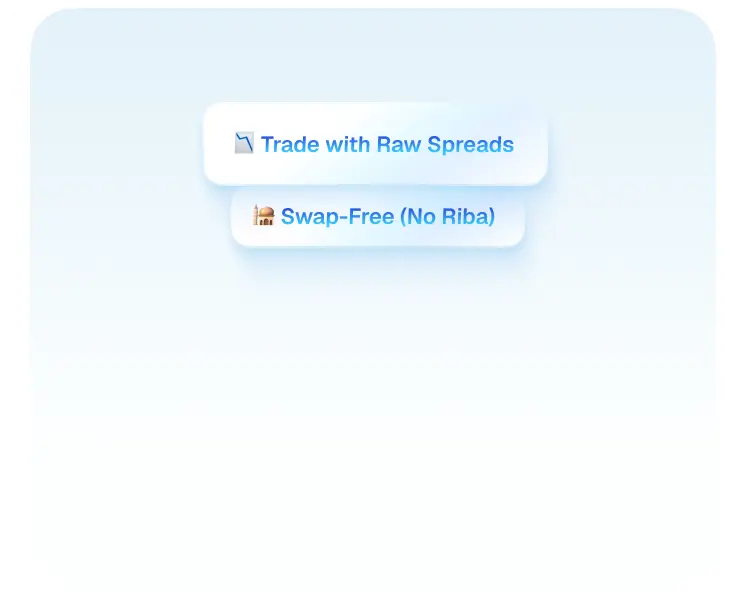 * A swap (or overnight fee) is a small charge applied when you hold a position open past market close. Traders following Riba-free (Islamic finance) principles can choose our swap-free Islamic account, which replaces the swap with a fixed overnight fee — so your trading stays fully compliant.